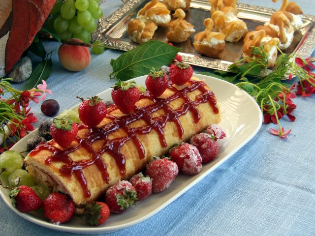 Suggerimento: Mia madre preparava spesso il rotolo di pan di spagna. Se aveva fretta e non poteva fare una farcitura, spalmava un vasetto di marmellata di fragole sul rettangolo, arrotolava stretto e spolverava con zucchero a velo: Il risultato? Semplice, buono e bello a vedersi, perché dopo tagliato in tante fette lei le adagiava sul piatto in modo da sembrare una grande girandola, cosa che piace molto, soprattutto ai bambini: anche l'occhio vuole la sua parte!!!