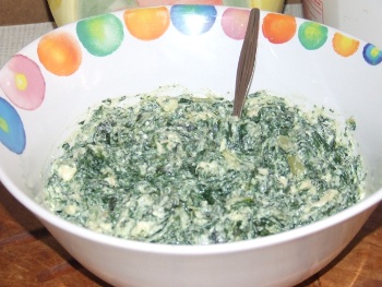 Nel frattempo cuocio le foglie di bietola al dente, pronte per essere scolate. Le stendo nel settaccio per farle raffreddare, perché debbono essere pressate molto forte per fare uscire tutta l’acqua. Quando risultano prive di liquido, le taglio piccolissime (meglio tritarle), e le amalgamo insieme agli altri ingredienti.