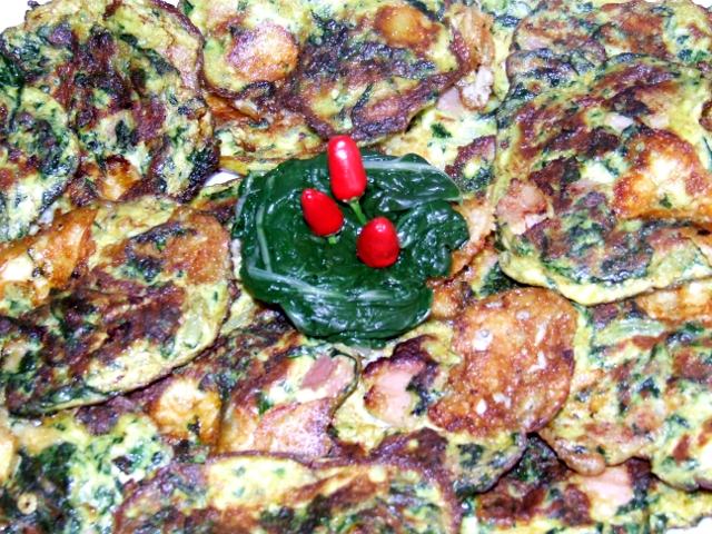 Per le frittelline: bietola, due bei mazzi, oppure un kg. di sole foglie senza gambo, 200 g. di ricotta, possibilmente di pecora (a chi piace), 200 g. di mozzarella, 3-4 uova, 70g di parmigiano grattugiato, sale, un po’ di olio di oliva per friggere le frittelline;