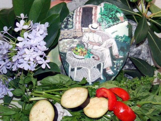 Questa pietanza è un ottimo secondo piatto ed è buona anche raffreddata, per esempio per passare la serata in compagnia, inoltre si presta come altre ricette precedenti, per essere messa, insieme ad altre delizie, in un cestino da picnic per essere consumate all’aria aperta, proprio come rappresentato nelle immagini sulla pietra “Riposino nel giardino”.