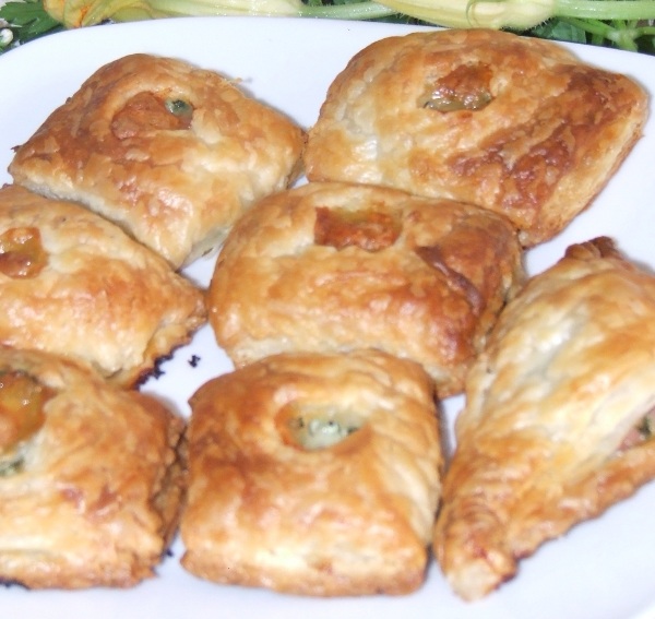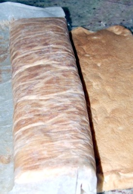 Per i “rustici” preparo lo stesso impasto come descritto per le frittelline, ma senza uova, perché deve essere asciutto, per impedire che la pasta sfoglia si inumidisca durante la cottura.