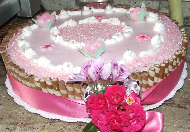 Se preferite farcire uno strato togliete ⅓ della crema, mettendola in una ciotola e aggiungendo per esempio 100 gr. di cioccolata fatta ammorbidire, oppure delle fragole tagliate a pezzettini, o altro...