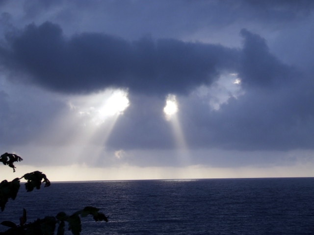 Guardando fuori dal balcone e dalle finestre mi accorsi che sul mare il cielo era tutto nero. Anche le montagne erano avvolte dalle nuvole cariche di pioggia, e in lontananza ogni tanto scendeva già un fulmine, che, prima di tuffarsi nel mare, illuminava tutto intorno.